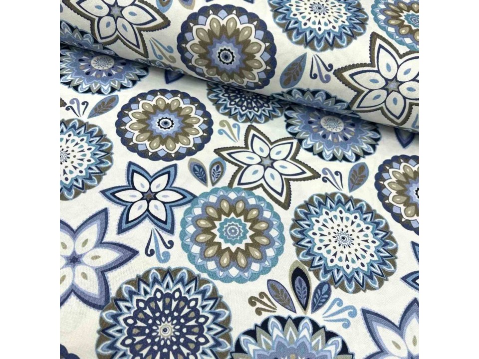 Хидрофобиран плат, подходящ за завеси, дамаски, покривки, тишлайфери, салфетки, чанти. Ширина 180 см, състав 65 % памук и 35 % полиестер.
